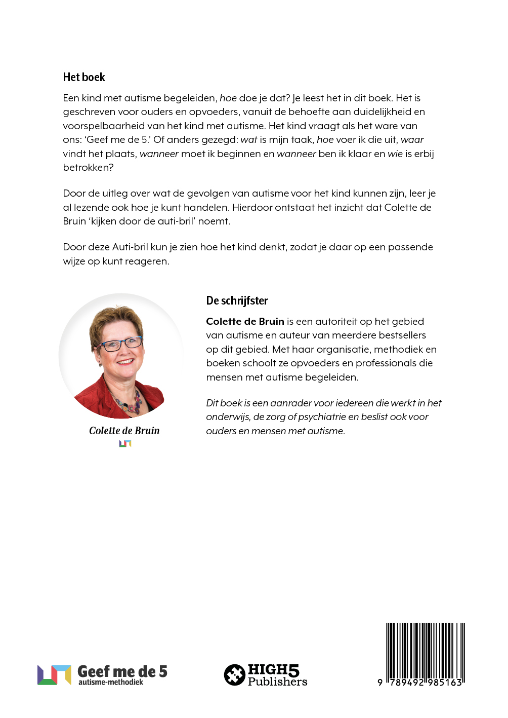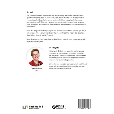 Met meer dan 125.000 verkochte exemplaren is Geef me de 5 al jaren een veelgebruikt boek door ouders, leerkrachten en begeleiders van mensen met autisme. De methodiek heeft in de praktijk haar kracht bewezen en is nu nog toegankelijker gemaakt.